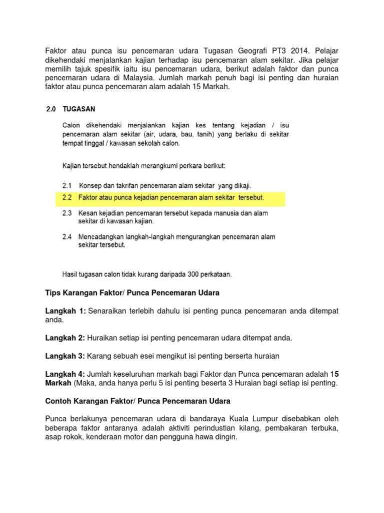 Faktor Atau Punca Isu Pencemaran Udara Tugasan Geografi Pt3 2014 Pdf